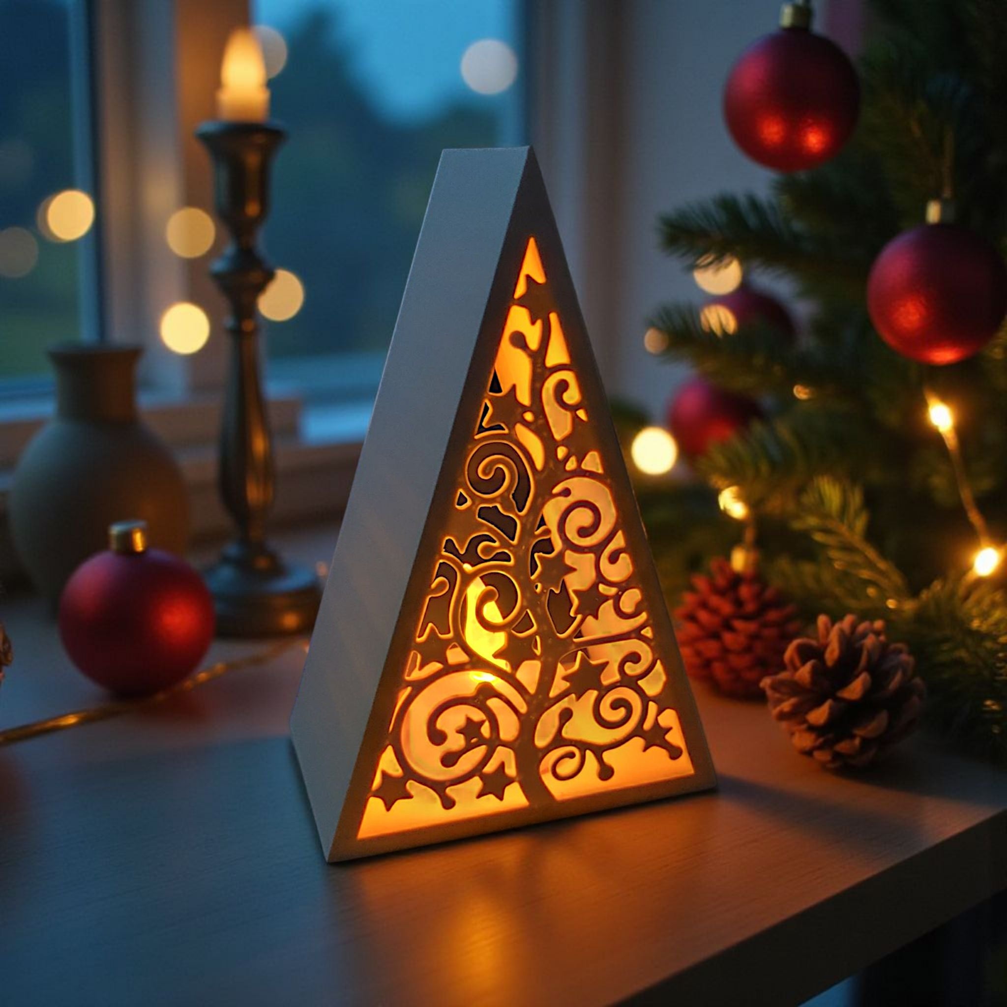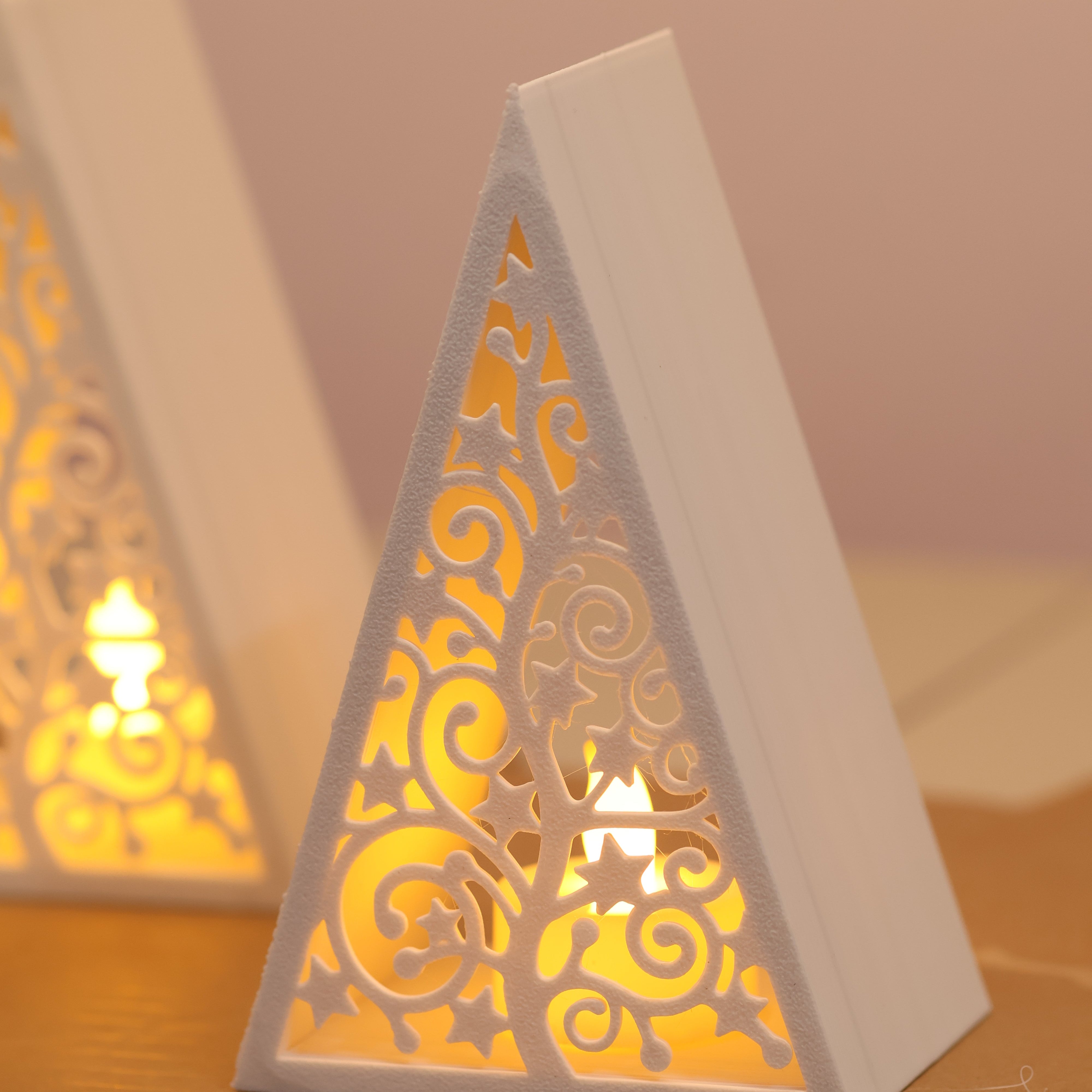 Expertly designed with fine cut-work detailing, this Christmas tree silhouette showcases elegant patterns that cast a beautiful glow when the tealight is lit. Every curve and cut is crafted to enhance the festive charm.